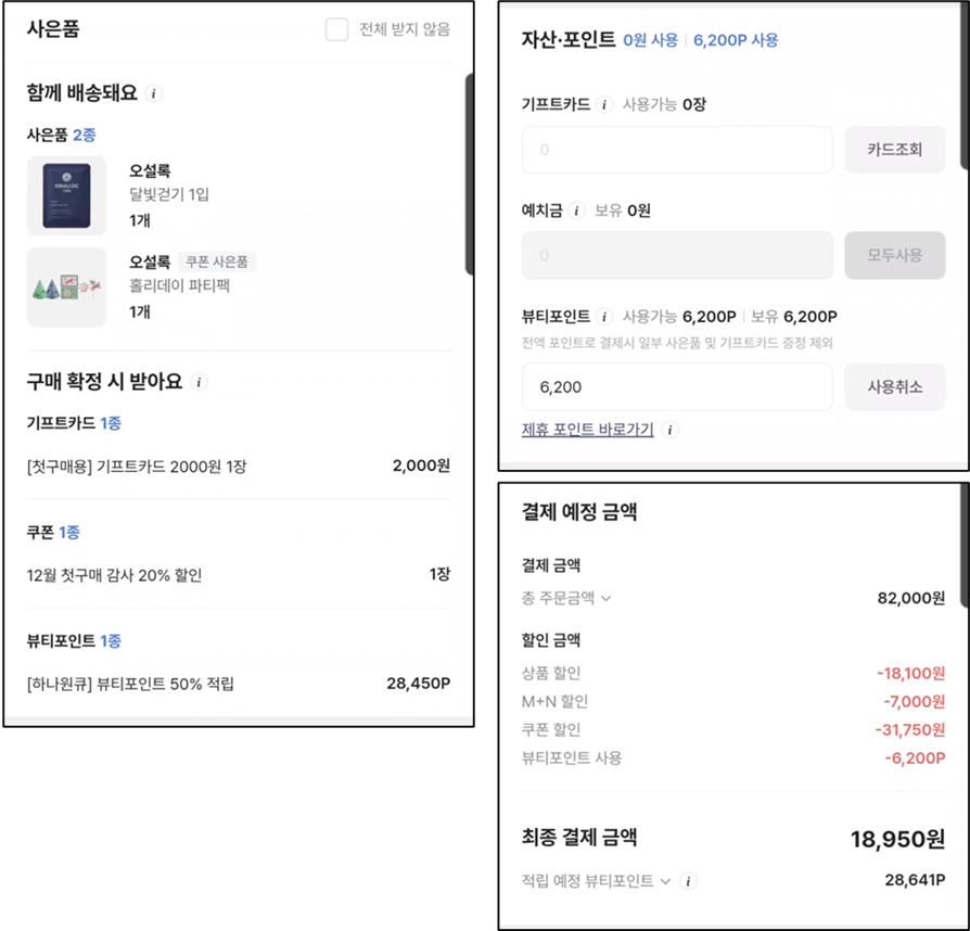 - ✅ 수입: 뷰티포인트 적립 + 기프트카드 + 사은품