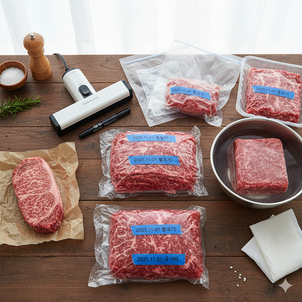 3. 한우 냉동 보관법 (장기 소분 루틴)